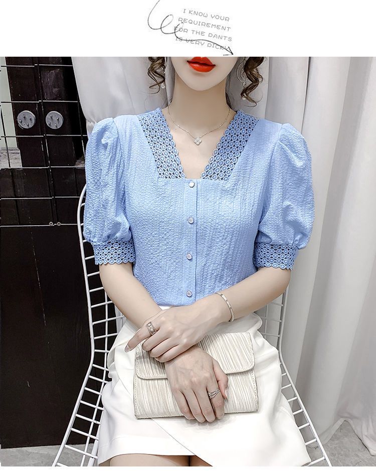 เสื้อคอวีลูกไม้ลายฉลุ